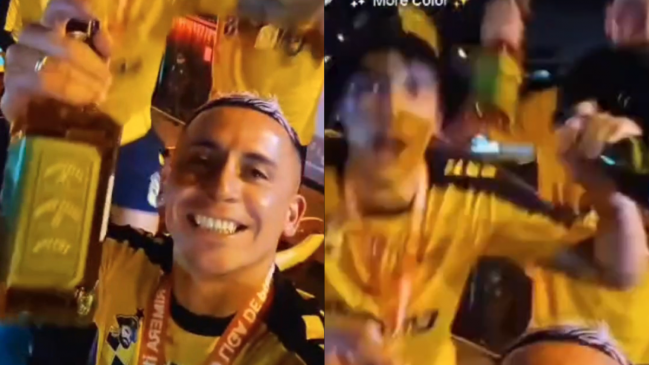 En medio de los festejos por el histórico título de Coquimbo Unido, una de las transmisiones en vivo dejo ver la celebración del delantero Nahuel Donadell, quien estuvo con una botella de whisky en mano mientras cantaba en el bus que transportó al plantel por la ciudad.